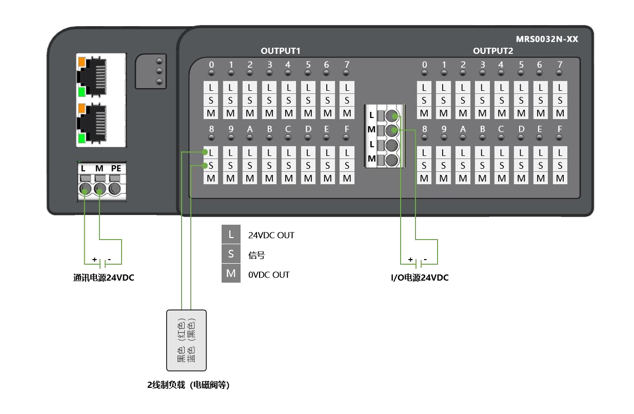 電源接口:模塊供電:3P歐式彈簧端子;負載供電:4P歐式彈簧端子